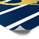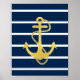 Poster, imprimer avec un panneau d'ancrage en feuille d'or sur un arrière - plan rayé bleu marine. Cette empreinte nautique sera le décor parfait sur vos murs avec son style moderne.