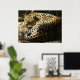 Une belle photo d'un léopard qui léopard au soleil du matin après avoir mangé il est petit-déjeuner. L'ombrage et l'éclairage rendent cette photo très impressionnante. Un must pour ce grand amant de chat dans votre vie. Il aurait l'air excellent accroché dans votre maison, bureau ou dortoir.