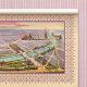 Cette image de carte de commerce victorienne, élégante et insolite, recouverte d'une belle couleur lavande, décrit la disposition de l'Expo 1900 à Paris. Une collection de bateaux sillonnent paresseusement la Seine bleue de l'aquamarine. Un ciel coloré, teinté de rose, vient compléter les couleurs douces de lavande de l'illustration centrale.