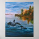 D'une peinture à l'huile originale de Brenda Thour de deux huards sur un lac au coucher du soleil avec un huard battant ses ailes. Copyright par Brenda Thour 2004.