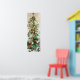 Mur représentant un arbre de Noël fantaisiste avec un chaton espiègle et même Père Noël aidant à la décoration des arbres