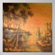 Réimpression d'une lithographie et d'une carte montrant la rivière Mississippi avec des bateaux à vapeur, des radeaux et des voiliers la veille d'été. Réimprimé sur cette affiche.