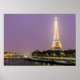 Poster présenté avec une photo de la célèbre Tour Eiffel à Paris la nuit. Customisez cet objet ou achetez tel quel. Image stock