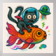 Cette affiche surréaliste capture un chat aux yeux larges dans un casque spatial chevauchant un poisson volant à travers un ciel cosmique tout en fuyant un vaisseau spatial alien excentrique. Plein de couleurs, de mouvements et de chaos de dessins animés, c’est l’oeuvre idéale pour les amateurs de science-fiction fantaisiste, de créatures d’imaginaires et d’aventures animalières hilarantes. Imprimé sur papier de haute qualité avec un arrière - plan blanc propre pour mettre en valeur chaque détail de cette scène vibrante et imaginative.