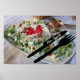 Affiche culinaire avec l'image d'une salade grecque et d'un couteau noir et fourchette avec les mots Bon Appétit.
