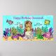 Belle sirène ethnique que j'ai dessinée main avec du corail, du poisson, de la tortue, du crabe et d'autres amusants fonds marins. Une jolie affiche tropicale pour l'anniversaire de votre fille. Ajoutez son nom dans la zone personnalisée.