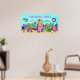Belle sirène blonde que j'ai dessinée main avec du corail, du poisson, de la tortue, du crabe et d'autres amusants fonds marins. Une jolie affiche tropicale pour l'anniversaire de votre fille. Ajoutez son nom dans la zone personnalisée.