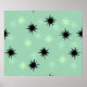 Cette affiche de Starbursts de Jade et Monnaie Atomique a tout le plaisir moderne du milieu du siècle de la cuisine de votre grand-mère, moins le linoléum collant. Le design kitschy est composé d'un arrière - plan jade avec des taches d'or et des starbursts placés aléatoirement en noir, jade et menthe. Cette motif d'inspiration vintage est assez moderne pour être design et rétro pour être classique. Vous apprécierez ce design minimaliste.