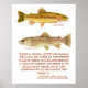 Oeuvre de l'artiste de la nature Thom Glace, de la truite arc-en-ciel de Kern River et de la truite marbrée slovène, avec une citation archaïque amusante sur le poisson de Thomas Best en 1787. Conçu pour The Grizzly Hackle Fly Shop de Missoula, Montana.