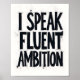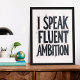 Affiche de typographie captivante avec un message de motivation audacieux "Je parle l'Ambition fluide". Parfait pour inspirer les entrepreneurs, les rêveurs et les créateurs d'objectifs. Design attrayant, idéal pour la décoration de maison ou de bureau.