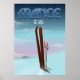 Impression d'une affiche de vacances sportives de ski "glace" de France sur un paysage balayé par le vent froid dans les Alpes françaises.