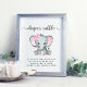 Joli panneau de dépôt de tombola pour votre petite fille douche avec "tombola de couche" écrit dans un script gris doux élégant avec des swashes et une aquarelle rose pastel d'un bébé éléphant.