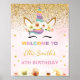 Bienvenue à vos invités avec éclat et magie grâce à cette parties scintillant d'or signe de bienvenue licorne ! Doté d'une licorne majestueuse aux accents dorés chatoyants et aux couleurs pastel douces, ce design est parfait pour des anniversaires sur le thème de la licorne, des célébrations élégantes ou des fêtes d'imaginaires. Le texte est entièrement modifiable, vous pouvez donc le personnaliser pour s'adapter à votre événement spécial.