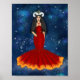 Affiche de mode de la déesse Zodiac Aries. Le dessin présente une femme en robe rouge et orange représentant le panneau du feu. Il comprend également le symbole Aries qui est les cornes de bélier. Poster de déesse de mignonne Bries pour les femmes nées dans la saison des mûres. Grand cadeau d'astrologie pour les anniversaires ou Noël.