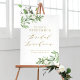 Poster Déjeuner nuptial d'or vert et de fleurs blanches