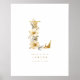 Poster Delicate Romantic Floral E Letter Gold Glitter