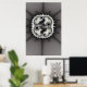 OEuvre fractale unique en forme de starburst blanc avec une gaine opalescente verdâtre et rosâtre sur un arrière - plan gris dégradé et surligné en noir.