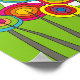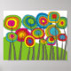 Whimsical Blume Art Poster in leuchtenden Farben. Funky Blume in den Farben Grün, Gelb, Orange, Blau und Rot.