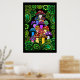 Une affiche aux champignons psychédéliques colorés entourée de paisibles verts et de mandalas vertes.