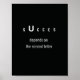 Avec la déclaration audacieuse "SUCCESS DEPENDS ON THE SECOND LETTER", ce design moderne et élégant livre un message puissant que le succès commence avec vous. En se concentrant sur le "u" en succès (prononcé "vous"), ce design encourage l'autonomie et l'action, rappelant à chacun que le succès véritable repose sur l'effort personnel et la détermination. C'est le cadeau de motivation parfait pour quiconque cherche à prendre le contrôle de son avenir et à cesser de compter sur les autres. Donnez le don de l'autonomisation et d'inspirer quelqu'un à croire en leur propre potentiel, commandez maintenant!