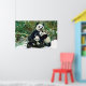 Un Panda avec bébés.a un panda noir et blanc assis avec ses deux petits avec vue sur la forêt derrière lui et un arbre autour d'eux et la neige sur le sol.Ceci est une belle photo.