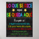 WAS SIE HIER SAGEN, BLEIBE IN HIER - Spanische Version Ein spanisches großes Poster, um in einem Schulberatungsbüro, Kindertherapeut oder Kinderpsychologe zu hängen, um Kinder daran zu erinnern, dass sie sicher und frei sind, offen zu sprechen. Das Vertraulichkeitspopster ist auch Staaten, dass es bei Gefahr als jemand anderes zu sagen hat. Ein sehr niedliches Plakat, mit dem das Beratungsbüro dekoriert werden kann! Das Chalkboard-Design der Imitate ist hell und freundlich.
