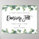 Cadre feuille d'eucalyptus en argent peint, affiche de flip flop mariage personnalisée. Caractéristiques, "Dancing Feet" script graphique et accent du coeur.