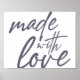 Design graphique simple, ludique et élégant d'un dicton "Fabriqué avec amour" en gris. Powerfu, gras écrit à la main, typographie calligraphique.