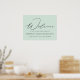 Élégant panneau de graduation avec "Welcome" dans un script de calligraphie moderne noir avec un arrière - plan vert menthe (ou couleur de votre choix). Personnalisez l'affiche moderne en ajoutant le nom du diplômé, le nom de l'école et l'année de remise des diplômes. Le panneau vert menthe est parfait pour les diplômés du secondaire et du collège.