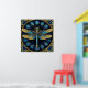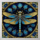 Illustration détaillée d'une libellule aux ailes colorées entourée de motifs décoratifs en or et en bleu, mettant en valeur l'élégance artistique et la beauté organique de la nature.