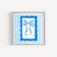 Ajoutez une touche de charme délicat à votre espace avec cette estampe d'art fantaisiste mettant en vedette un nœud coquet bleu dessiné à la main, inséré dans un cadre rectangulaire ludique. Le fond rayé bleu et blanc doux crée une atmosphère légère et aérée qui complète parfaitement l'illustration élégante du nœud.