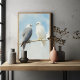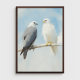 Un tableau détaillé de deux faucons perchés sur une mince branche avec un ciel bleu clair et doux dans l'arrière - plan. Un faucon est gris avec des accents foncés, tandis que l'autre est blanc vif avec des talons dorés, créant un contraste saisissant. Les coups de pinceau texturés donnent à l'oeuvre une sensation douce et naturelle, parfaite pour capturer la beauté des oiseaux dans leur habitat naturel.