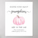 Sympa signe de jeu pour votre bébé douche fille avec "Devis Combien de Citrouilles" écrit simple typographie grise et un script élégant avec des swashes et une aquarelle d'un citrouille rose pastel. Placez un bocal rempli de citrouilles de bonbons en dessous et demandez à vos invités de deviner combien sont dans le bocal. Le gagnant sera l'invité qui se rapproche le plus sans passer par là. Les cartes de devis correspondantes sont disponibles dans notre Sweet Little Citrouille Baby Girl Shower Collection.