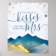 "Devinez combien de baisers pour le futur Mr & Mrs" Moderne Vintage élégant Mariage Douche / Fête des mariées Signes de jeu Modèle - Vert Bleu et Faux Or Fond d'aquarelle Montagnes Paysages Paysages. Ces Designs Peuvent Être Personnalisés Pour Votre Occasion Spéciale Et Seraient Parfaits Pour Votre Mariage, Fête des mariées, Partie D'Engagement, Fête D'Anniversaire Et Beaucoup D'Autres Occasions Spéciales.