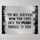 Posters et imprimés de devis motivationnels. Vous ne connaîtrez jamais vos limites tant que vous ne vous y poussez pas avec des bords argentés faux arrière - plans et grunge. Idéal pour n'importe quel domaine de votre vie. Fitness, entraînement, course, travail, image personnelle, sport et vie quotidienne.