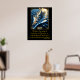 D'en haut, un grand cuirassé fend la mer agitée, symbole de la puissance navale. Les détails complexes du navire, y compris les antennes et les tourelles de canon, sont clairement visibles. L'océan bleu profond, reflétant la lumière du soleil, fournit un arrière-plan dramatique à la présence puissante du navire. Le fond noir solide accentue l'action et l'urgence de la scène. Le mot "Devoir" apparaît en haut, écrit de manière élégante. "Les libertés de notre pays, la liberté de notre Constitution civile, valent la peine d'être défendues à tous les risques ; et c'est notre devoir de les défendre contre toutes les attaques." -Samuel Adams