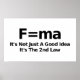 F=ma - Ce n'est pas seulement une bonne idée C'est la deuxième loi - noir et blanc affiche une fusion humoristique de la deuxième loi du mouvement de Newton avec un slogan vintage d'application de la loi.