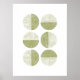 Cette impression d'art moderne et géométrique présente une série de cercles verts divisés en deux, et divisés en lignes courbes et droites. Ce design est assez polyvalent pour fonctionner avec une variété de styles de décoration, mais je pense qu'il aurait l'air génial dans un bureau ou un loft.