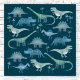 Beaucoup de dinosaures bleus, Tyrannosaurus rex, Spinosaurus, Stegosaurus, Diplodocus et Tricératops sur un arrière - plan turquoise profond.