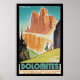 Affiche de voyage vintage en France faisant la promotion du tourisme dans les Dolomites italiennes.