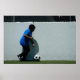 Un joueur junior de football donne 100& de lui dans un jeu de football arène.