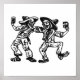 Deux squelettes amicaux en costumes et sombreros dansent. Dans le style de Posada.