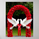 Deux colombes blanches se rencontrent sous une arche de roses rouge ornée de perles, créant une atmosphère sereine et romantique, symbolisant l'amour, la paix et la convivialité. Parfait pour les thèmes romantiques et mariages.