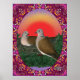 Une paire de tourterelles de nidification est déclenchée par un ciel vibrant. Le design donne un aspect presque vintage à l'oeuvre.