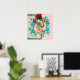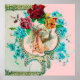 Design floral élégant, coloré, dynamique de style vintage avec un bébé et cigogne volant parmi le beau romantique rose, roses rouges, fleurs de printemps bleu turquoise par Bulgan Lumini (c).Facile à customiser avec votre propre texte et inizirés pour baby showers, fête d'anniversaire d'enfant, ou à peu près tout événement que vous souhaitez!