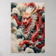 Poster Dragon à souffle de feu rouge et blanc
