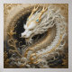 Elégant Dragon Arts d'or blanc avec majestueuse corne d'or et diamant dans le pour tête dans les styles de musée de toile.