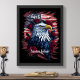 Montrez votre patriotisme avec style. Cette conception est composée d'un aigle chauve entouré de roses rouges devant un drapeau américain. Convient pour le 4 juillet, l'Indépendance ou le Jour du Président, ou tout jour férié national. Affichez dans votre bureau à domicile pour le bar.