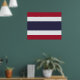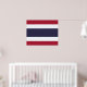 Ce dessin présente le drapeau national de la Thaïlande (officiellement le Royaume de Thaïlande et anciennement connu sous le nom de Siam) est un pays en Asie du Sud-Est. Il est situé au centre de la péninsule indochinoise et se compose de 76 provinces. La capitale et la plus grande ville est Bangkok, une zone administrative spéciale. La Thaïlande est bordée au nord par le Myanmar et le Laos, à l'est par le Laos et le Cambodge, au sud par le Golfe de Thaïlande et de Malaisie, et à l'ouest par la mer d'Andaman et l'extrémité sud du Myanmar. La Thaïlande est considérée comme une puissance régionale en Asie du Sud-Est ; l'industrie, l'agriculture et le tourisme sont les principaux secteurs de l'économie.