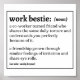 Bestie de travail (nom) : Un collègue devenu ami qui partage la même torture quotidienne et vous comprend parfaitement à cause de cela. Une amitié qui s'est développée à travers des sentiments similaires d'irritation et de partager des rouleaux oculaires. voir aussi : gardien de la santé mentale.